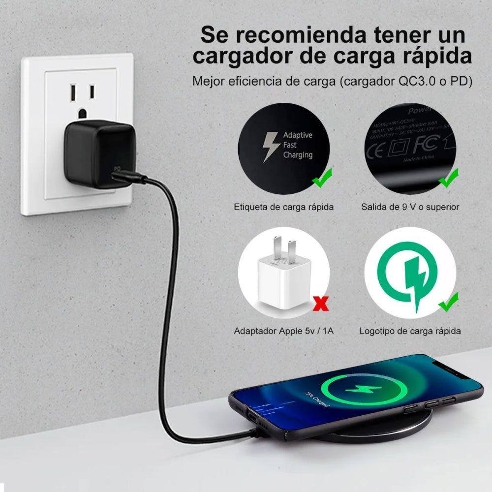 Cargador Inalámbrico Carga Rápida Qc3.0 Ip/sa/xm/hw 1hora