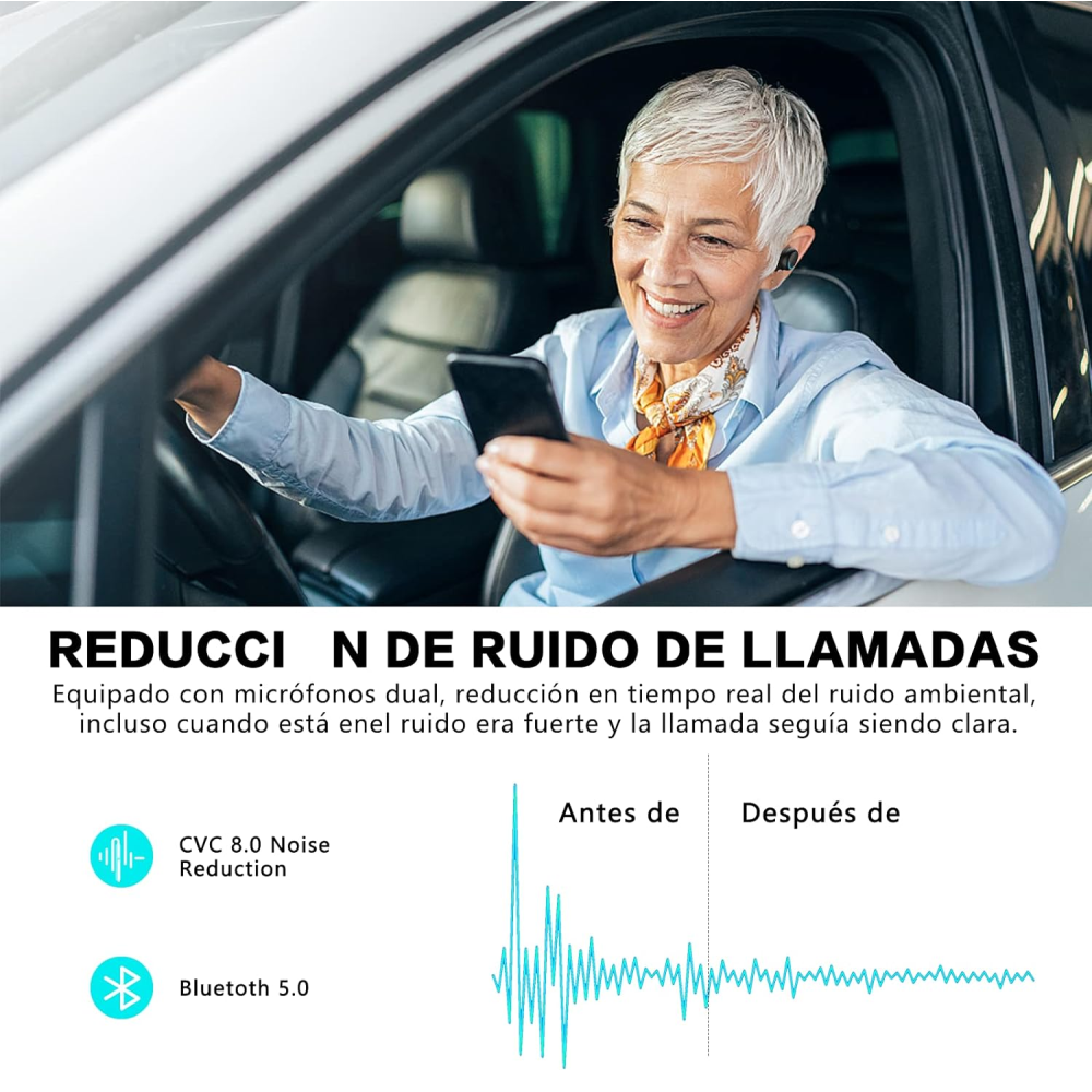 Los audífonos bluetooth inalámbricos están equipados con chips Bluetooth 5.0, que ofrecen un sonido estéreo dinámico 3D, una baja latencia de 89 ms. Le permite jugar juegos, ver películas, sincronización de audio y video. El micrófono incorporado y el diseño de reducción de ruido, incluso en el mercado ruidoso, y la llamada sigue siendo clara