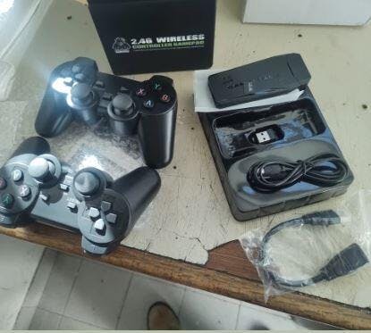 ALIMENTACIÓN: Se alimenta por puerto USB, le puedes agregar adaptador y cargarlo a la corriente eléctrica, como con un celular. CÓMO CONECTAR1 - Conecta la consola por HDMI al televisor.2 - Conecta el receptor de los controles (USB).3 - Conecta la fuente de alimentación de carga (cable con entrada USB) en el televisor o una base de carga.
