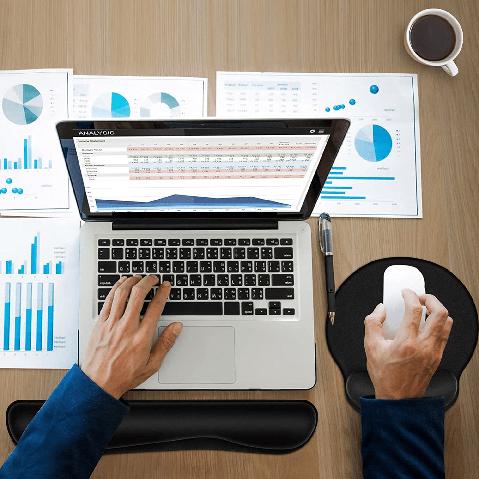 Hecho de espuma viscoelástica cómoda de alta densidad y tela transpirable agradable al tacto, soporte de liberación ergonómica de presión de codo y hombro, alivia la fatiga de la muñeca cuando el ordenador trabaja o juega durante mucho tiempo.